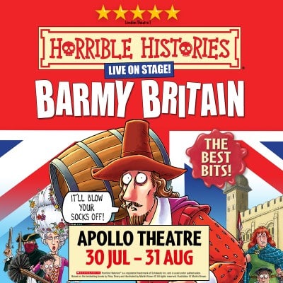 Horrible Histories: Barmy Britain is playing at the Apollo Theatre.